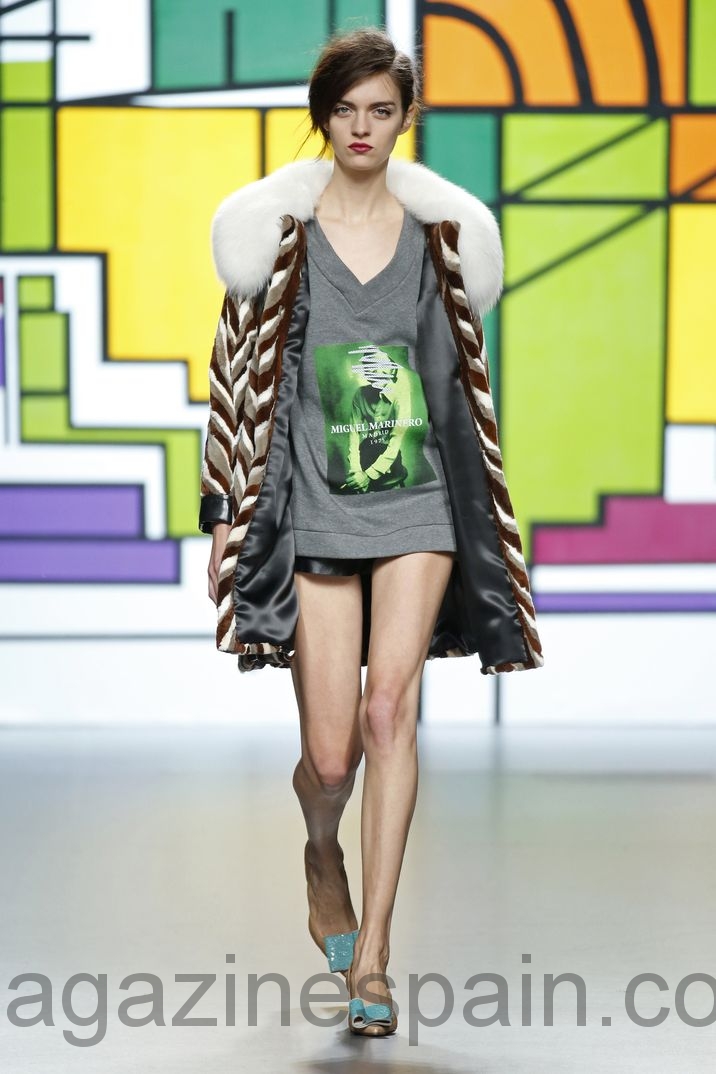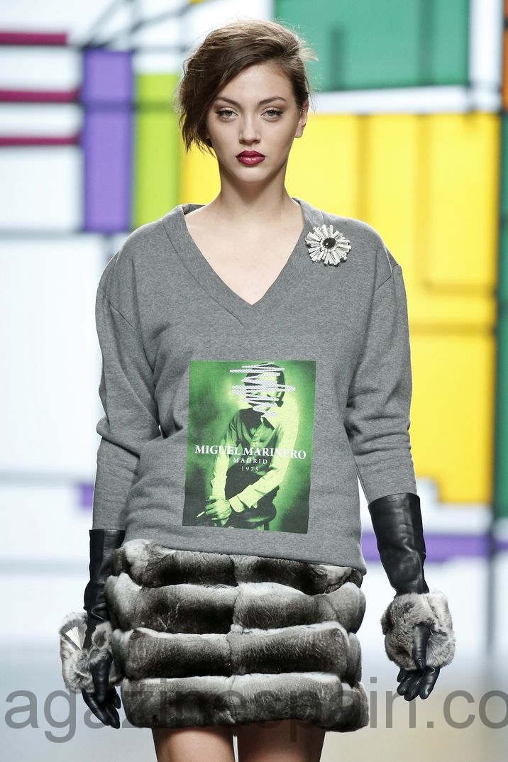 Miguel Marinero nos presenta diferentes estilismos con faldas de chinchilla y sudaderas grises de algodón, las cuales materializan la convergencia de dos generaciones en la marca.