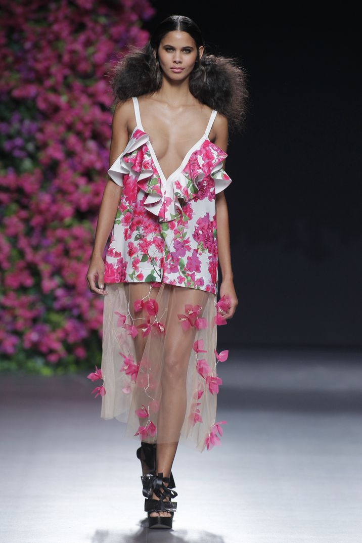 Los volantes conquistan la pasarela de la Mercedes Benz Fashion Week Madrid de la mano de la diseñadora Juana Martín.