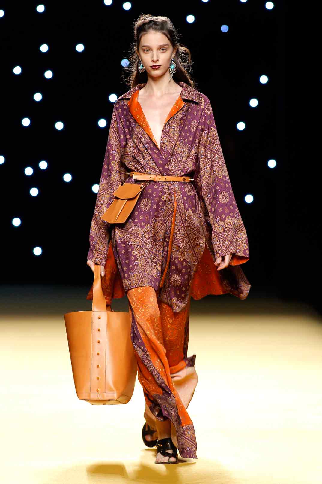 Además de sus vestidos con estilo de los años setenta, el diseñador Juanjo Oliva, también ha presentado pijamas de seda y prendas de carácter deportivo.