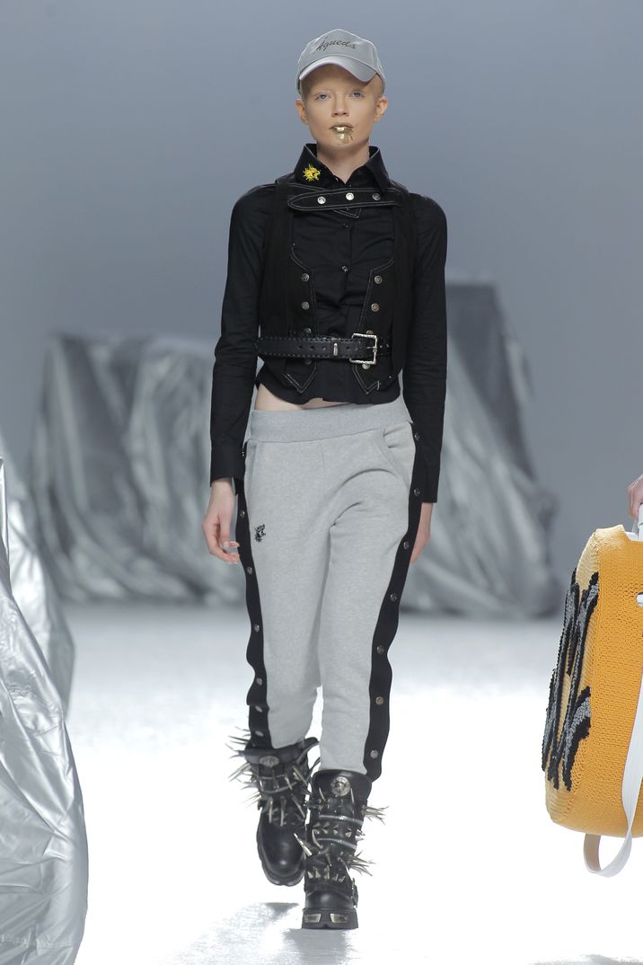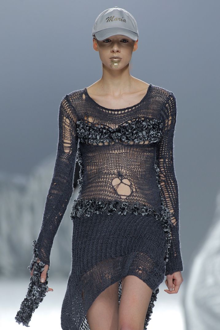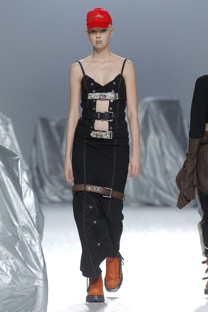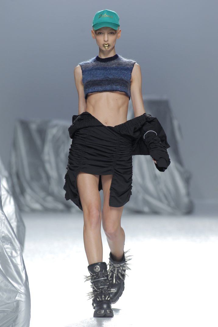 Por primera vez, María Ke Fisherman apuesta por tejidos delicados como la organza, con la que confeccionan vestidos que combinan con botas militares de pinchos con la intención de transgredir.