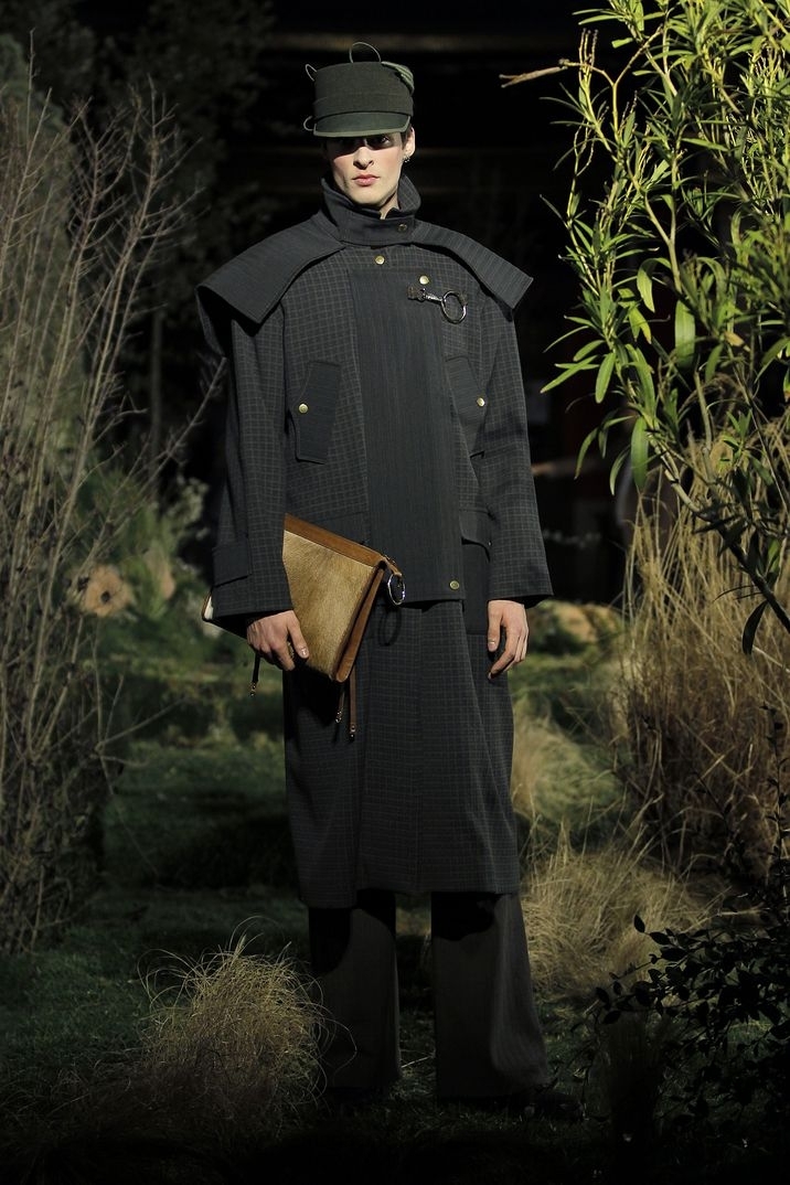 La colección Hunting de Palomo Spain despertó los aplausos de su público y, cuando el desfile parecía llegar a su fin, las puertas de un salón oscuro se abrieron para mostrar la colección en un escaparate muy especial, situado en una montaña llena de vegetación y árboles y con el techo de estrellas iluminando la estancia.