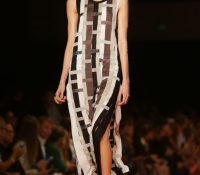 La colección se presentó en tres bloques diferenciados: un primero en blanco y negro, un segundo en el que los colores mezclados fueron los amarillos, azules y verdes, y, en tercer lugar, el morado se alternó con el rojo y el naranja.