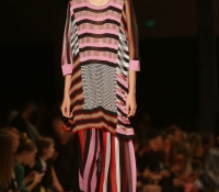 La firma italiana Missoni fue la encargada de cerrar la quinta jornada de moda en la ciudad lombarda con una colección basada en las rayas rectas y verticales, aunque dejando su espacio a cuadros y estampados geométricos.