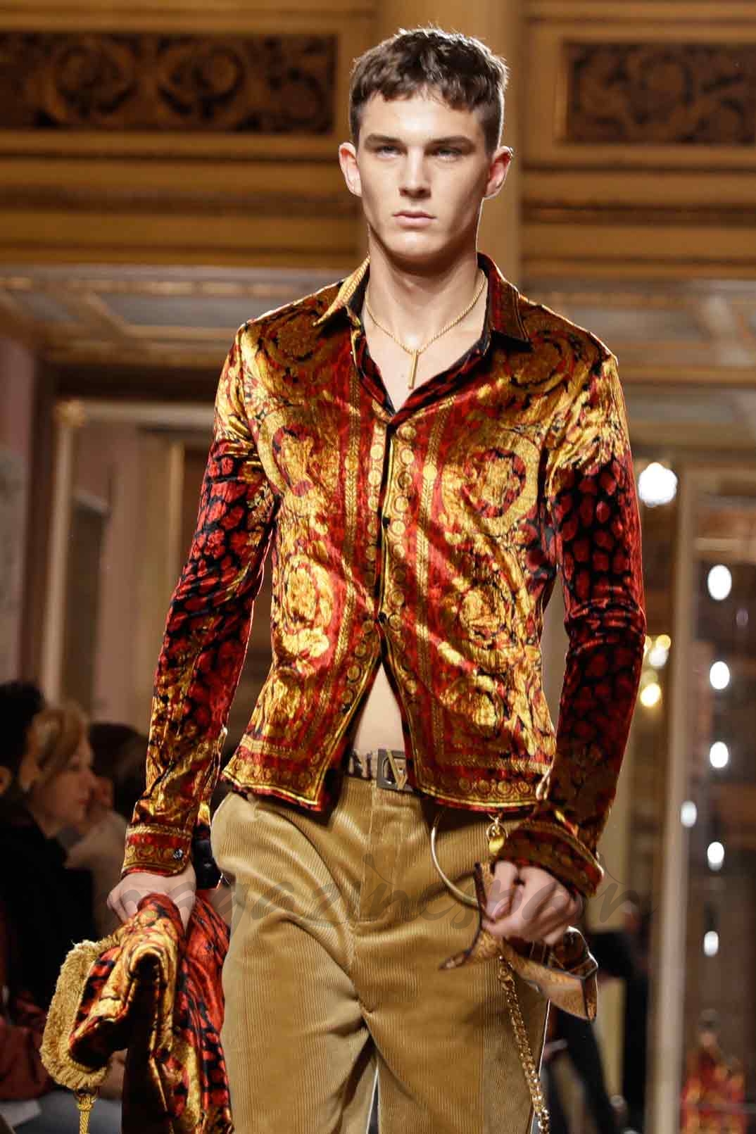 Donatella Versace lleva a la pasarela de Milan fashion Week 2018 su colección más «Versace» que nunca, mostrando el lado salvaje que todo hombre sabe que lleva dentro. Una reinvención del icónico Versace donde no han faltado «animal prints» , cenefas y looks muy barrocos.