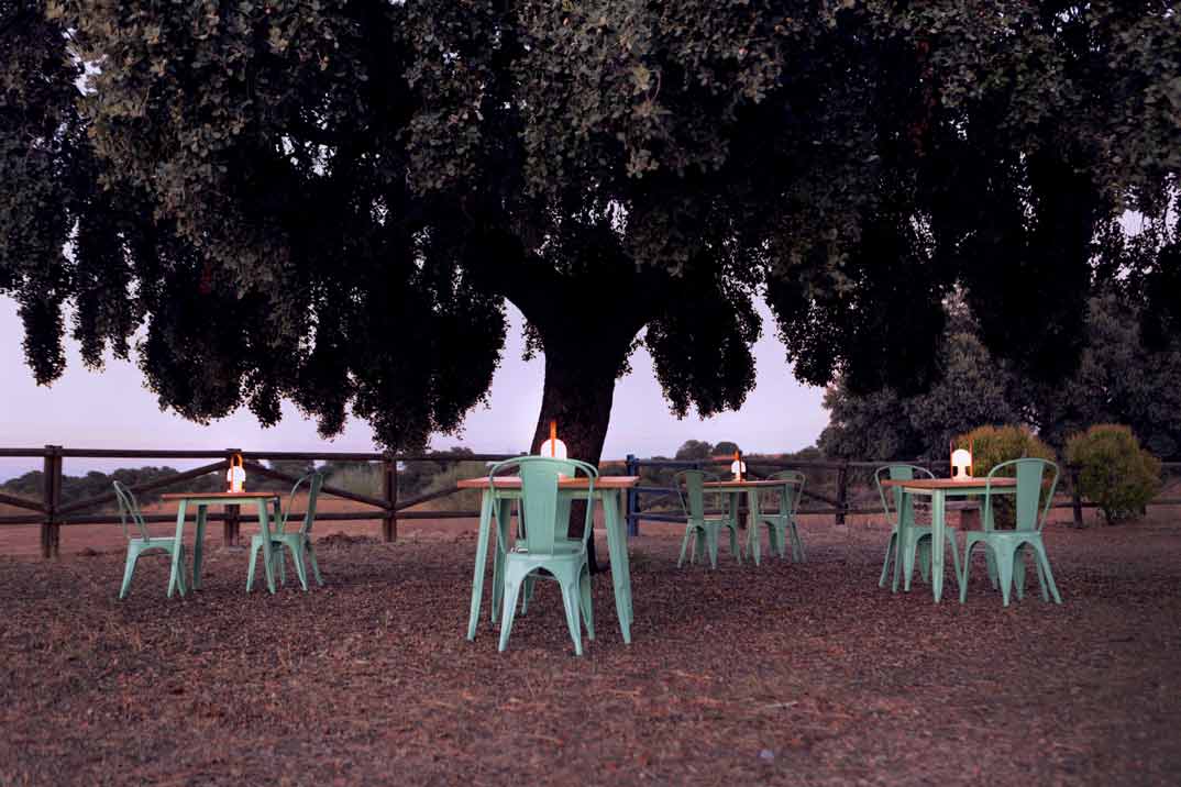 Además de una piscina exterior enclavada entre árboles que refresca en los días veraniegos. No me puedo olvidar del rincón de la encina, la Magia Pura que sientes debajo de ella al dejarte abrazar por sus ramas centenarias .