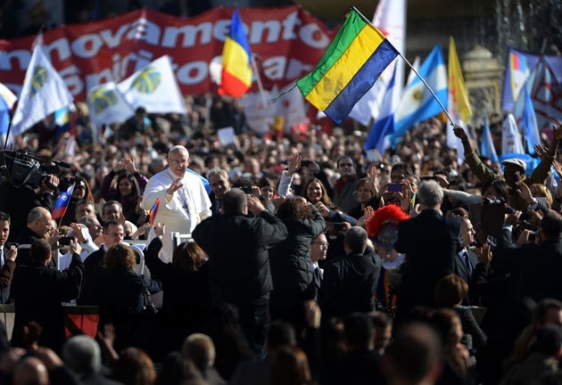 Montado en un papamóvil sin urna de cristal, una imagen que no se veía desde 1981, Jorge María Bergoglio ha recorrido la explanada del Vaticano en torno a las 9:00 horas, besando a alguno de los peregrinos más pequeños y saludando sin descanso a los miles de fieles que no han querido perderse este solemne inicio de su pontificado.