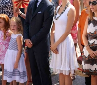 A la celebración no faltó ningún miembro de la Casa Real acompañados de su pareja y sus hijos. En el balcón de Palacio escucharon el discurso de sus padres, los mellizos, Jacques y Gabrielle en brazos de sus niñeras.