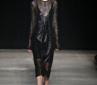 Sobre la pasarela hemos podido ver vestidos por encima de la rodilla con escotes, discretas transparencias y aberturas a un lado que dejan ver los muslos, confeccionados en seda, gasa, lana, crepé y chifón.