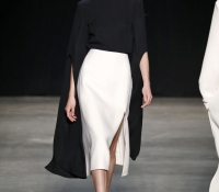 Una colección en la que el blanco y el negro son los auténticos protagonistas, ya sea en forma de vestidos, abrigos y camisas o pantalones. Los colores tierra, grises y rojos realizan una tímida aparición en la paleta de color del diseñador.