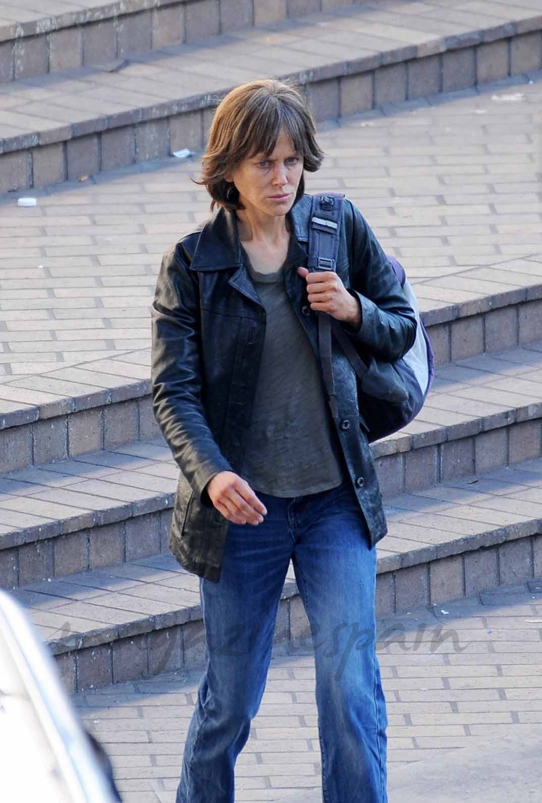Nicole Kidman, la actriz australiana, ha sido vista con una desaliñada peluca morena y una enorme chaqueta de cuero, muy alejada de su largo cabello dorado al que nos tiene acostumbrados.