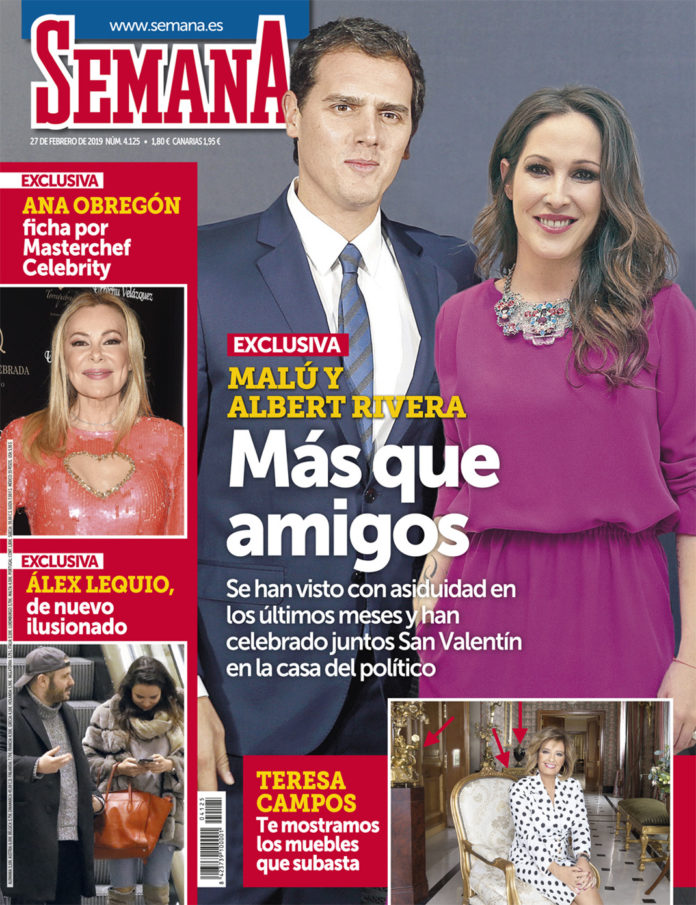 Malú y Albert Rivera son «más que amigos»… Con esta noticia nos sorprendía ayer la portada de la revista «Semana». Ahora se van conociendo más detalles de la relación del cantante y el líder de Ciudadanos que, según Lydia Lozano «se separa de su novia porque ella le pilló con Malú«.