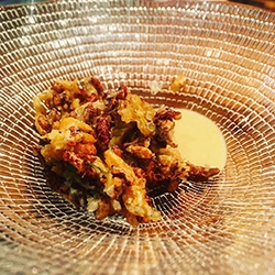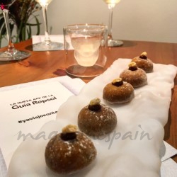 Diego Guerrero fue el encargado de traducir la aplicación en gastronomía, compartiendo con todos los asistentes sus experiencias viajeras a través de platos tan exquisitos como «falso calamar a la romana» sin harina ni huevo, sólo rebozado con la proteína del propio calamar; «mochi con mole dulce y tuba», donde mezcla la técnica japonesa con inspiración mejicana y, «arroz tailandés estilo kubak con camarones sazonados con aji».