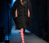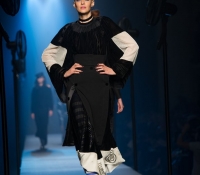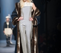 Su colección está inspirada en el mar, con ropa que recuerda a los marineros, salvando las distancias, transparencias, vestidos muy voluminosos y estampados de rayas, pedrería y combinando tejidos con pieles.