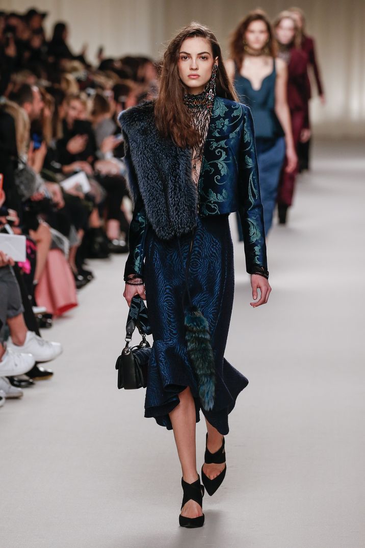 Sobre la pasarela pudimos ver chaquetas combinadas con pantalones de terciopelo, faldas plateadas con volantes, péplum, …