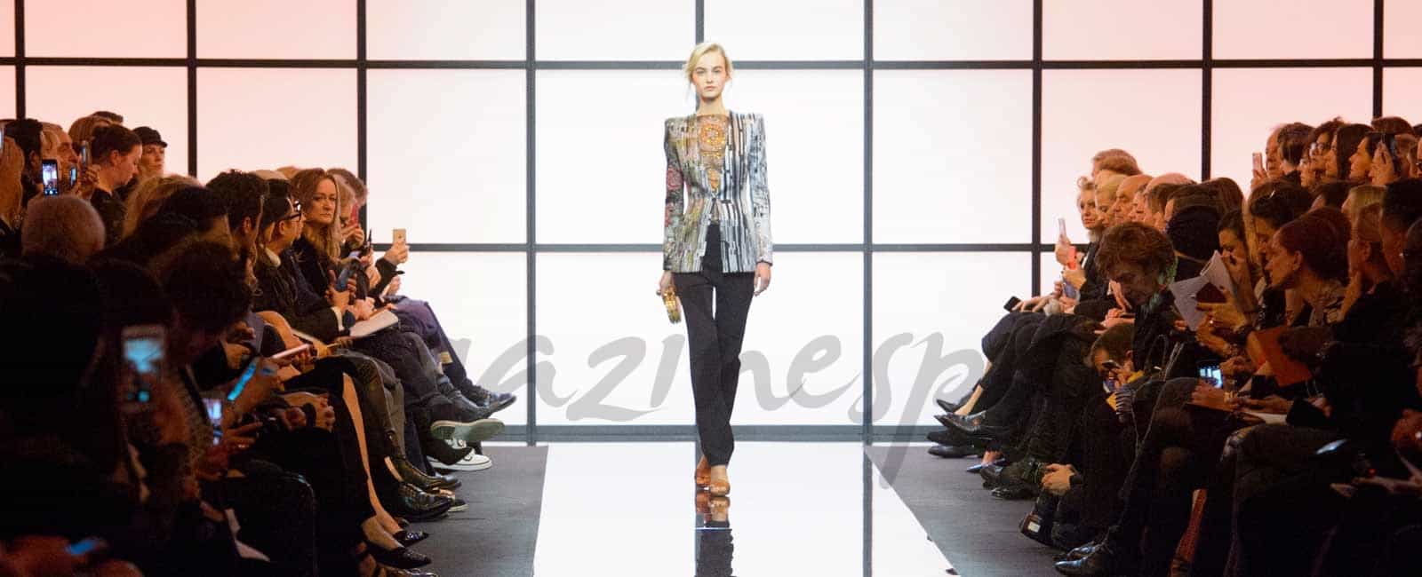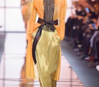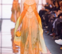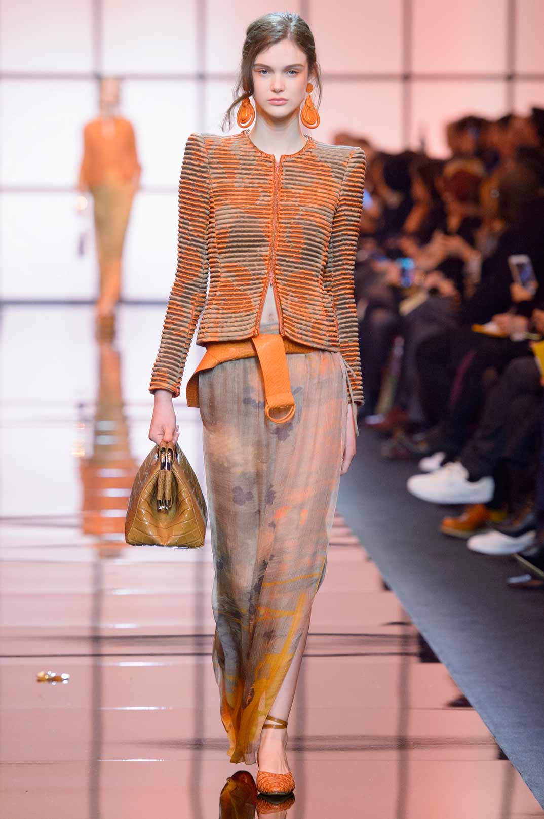 El título de la colección lo dice todo: ‘Orange Vibrations’. Así, el diseñador italiano ha recreado una puesta de sol a través de una paleta de color que va desde el naranja más intenso, al tangerina y los ocres y dorados, para terminar con el color por excelencia de la noche y siempre imprescindible para Armani, el negro.