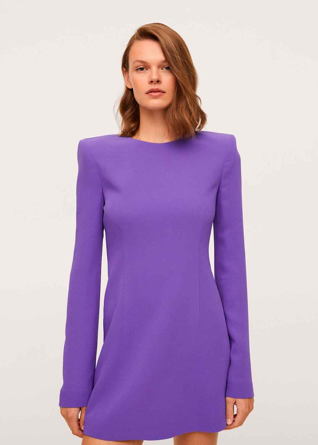 Se trata de un look lleno de color donde el protagonista es una de sus prendas favoritas, un vestido corto en este caso de entretiempo en color lila de Mango, de manga larga con el cuello redondo y diseño recto. Un diseño en el que también destacan unos espectaculares hombros estructurados.
