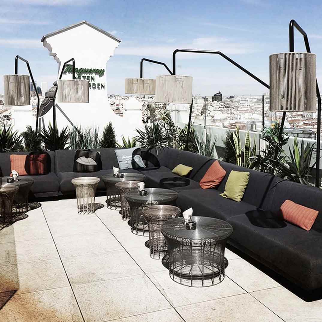 Algunas de las nuevas propuestas de Manuel Berganza también pueden disfrutarse en la azotea de Picalagartos en forma pequeños platillos para acompañar cócteles y otras bebidas a cualquier hora del día. La terraza del NH Collection Madrid Gran Vía tiene vistas 360o de la ciudad y destaca la zona en la que se divisa el hormigueo de la calle que le da nombre a vista de pájaro. La carta de coctelería la firma el bangladesí Joel Jamal, quien ha tenido en cuenta los productos españoles y ha apostado por combinaciones que incluyen finos y olorosos.