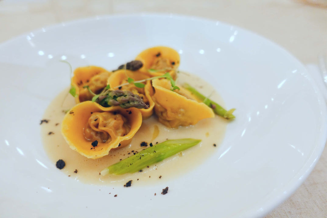 Después, probamos unos tortellonis de jackfruit y setas con salsa de mantequilla de maíz, espárragos, aceitunas negras y aceite de trufa. ¡Estaban buenísimos! Con sabor umami a más no poder, como a mi me gusta, un segundo plato inmejorable.