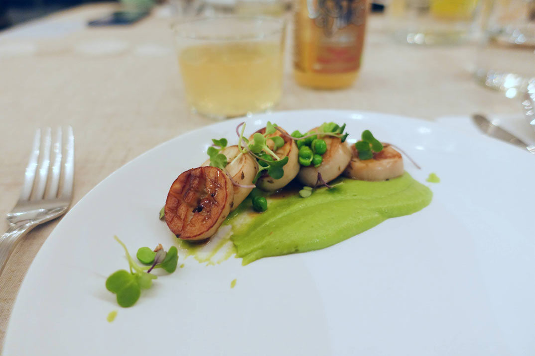 De entrantes nos pusieron unas “Vieiras” en su jugo con crema de guisantes y wasabi, el cual creo que de todos fue mi plato preferido. Así da gusto empezar una cena. ¡Aún sueño con la crema de guisantes y wasabi!.