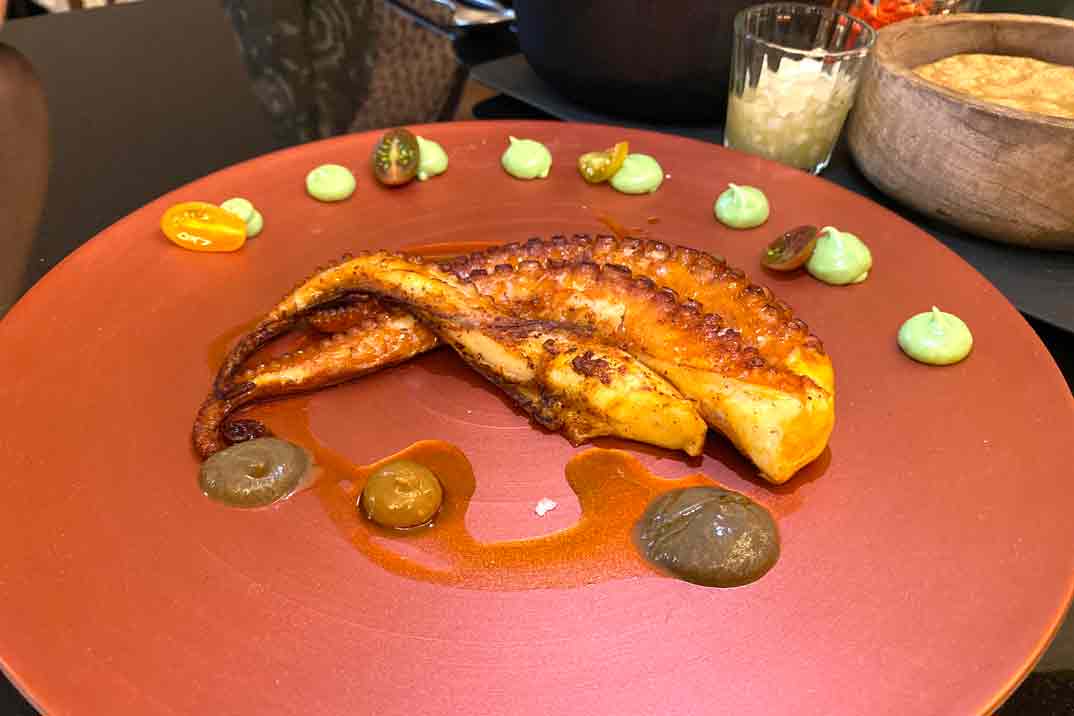 Entre sus platos fuertes caben destacar la «Terrina de cerdo confitado con salsa de Doña Raquel» donde el cerdo ha sido cocinado a dos temperaturas acompañado de salsa de potaje de lentejas de tres días. Muy recomendable también el «Pulpo Tikinxic Yucateco» macerado en mezcla de Axiote al estilo de la costa yucateca, puré de tomate rostizado y guacamole.