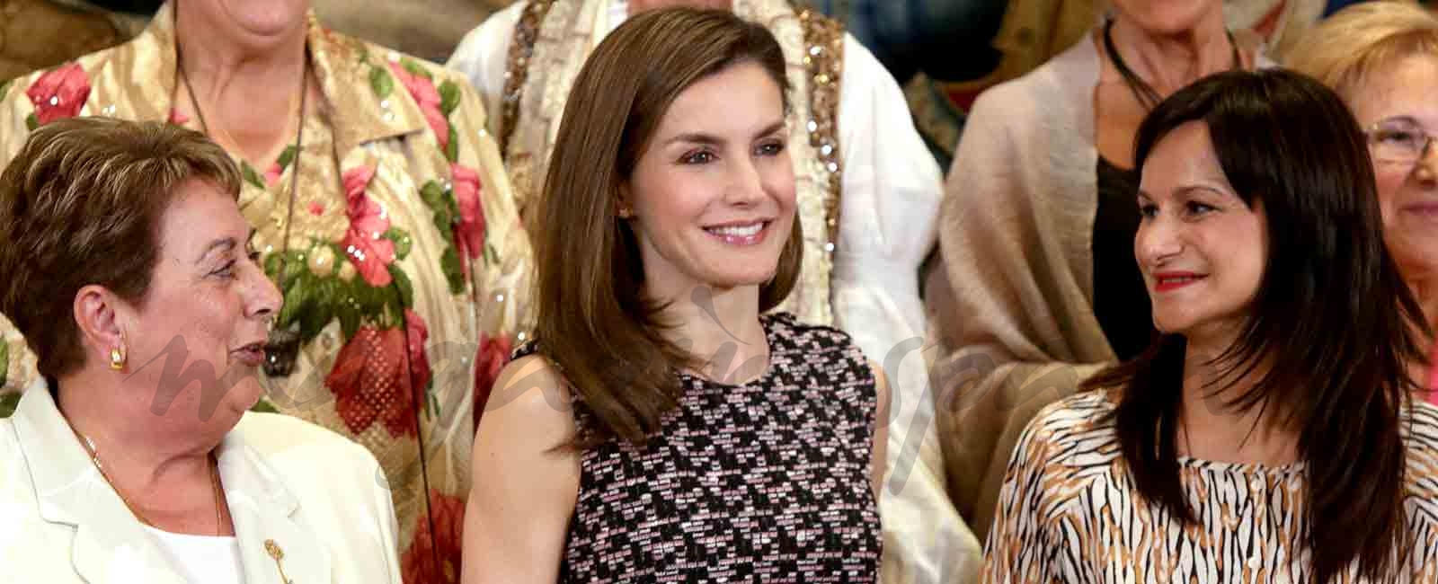 La reina Letizia mostró de nuevo su apoyo a la mujer en una recepción en Zarzuela a la Asociación Colectivo de Cultura Popular Alhama.