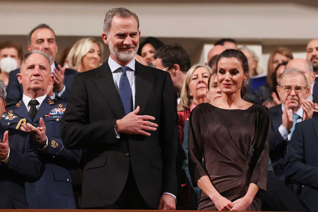 A su llegada a l auditorio, la reina Letizia acaparaba todas las miradas con su perfecto estilismo para la ocasión. Doña Letizia ha estrenado un original vestido en tonos oscuros, luciendo así el luto por el que suele apostar en este tipo de eventos.