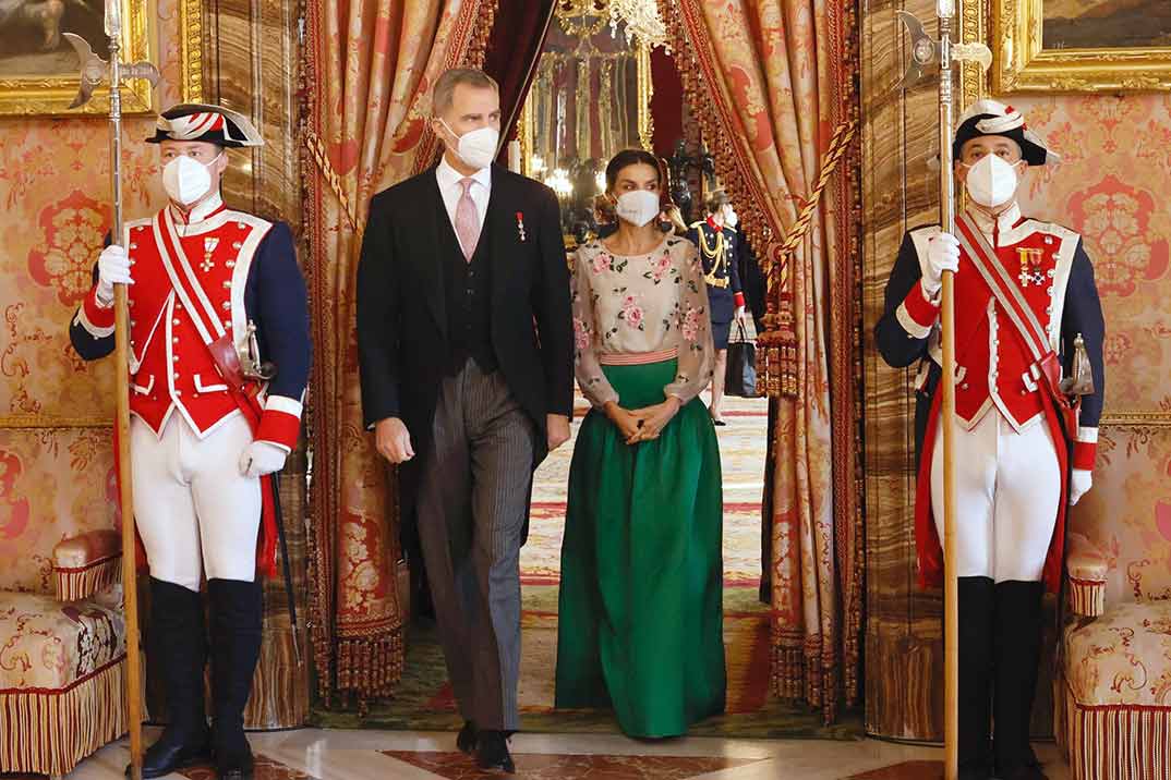 La Reina Letizia acude a la recepción del Cuerpo Diplomático con un romántico y colorido look vintage de Valentino que pertenece a la Reina Sofía.