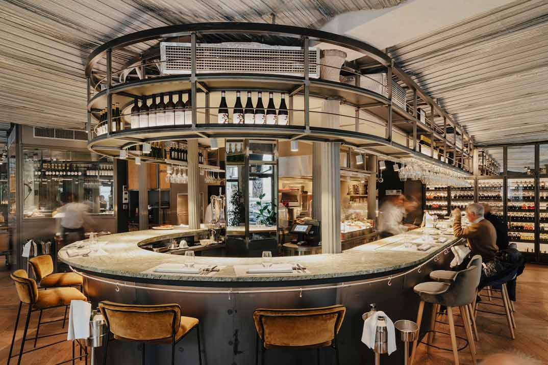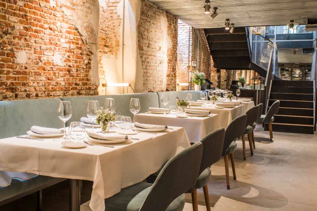 El espacio se compone de tres espacios. Tres maneras diferentes de vivir una experiencia completa en torno al pescado: informalidad y dinamismo en la barra con vistas a su cocina abierta, una sala con mesas bajas en su parte de arriba para lo que buscan la calidez y cercanía de una comida distendida y ágil o, el encanto y discreción, que paraliza el tiempo, en las mesas bajas del salón en su parte de abajo.