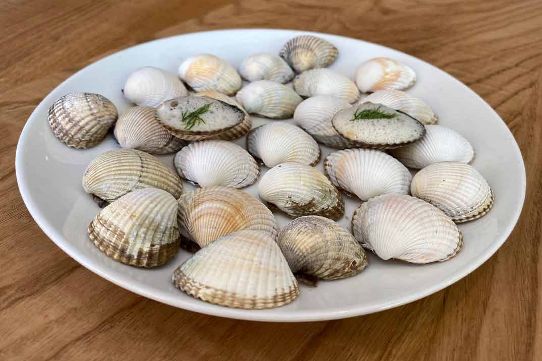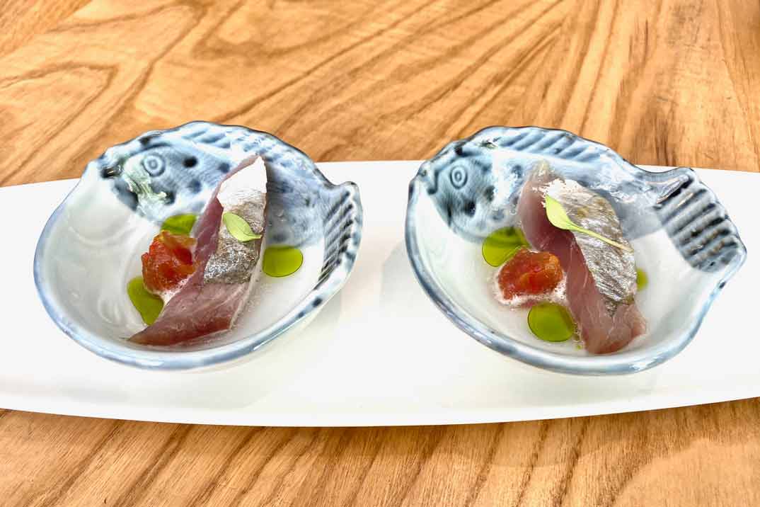 Pero vamos a lo que más interesa: nuestra experiencia gastro. Para que pudiésemos probar diferentes platos de la carta, Carlos nos preparó un menú degustación excepcional. Comenzamos con una pareja de lujo: «Anchoa de Santoña lavada en Oloroso y Boquerón«… Un matrimonio muy bien avenido. Continuamos con unos «Berberechos con mantequilla blanca«, una explosión de sabor a mar en un mini bocado.