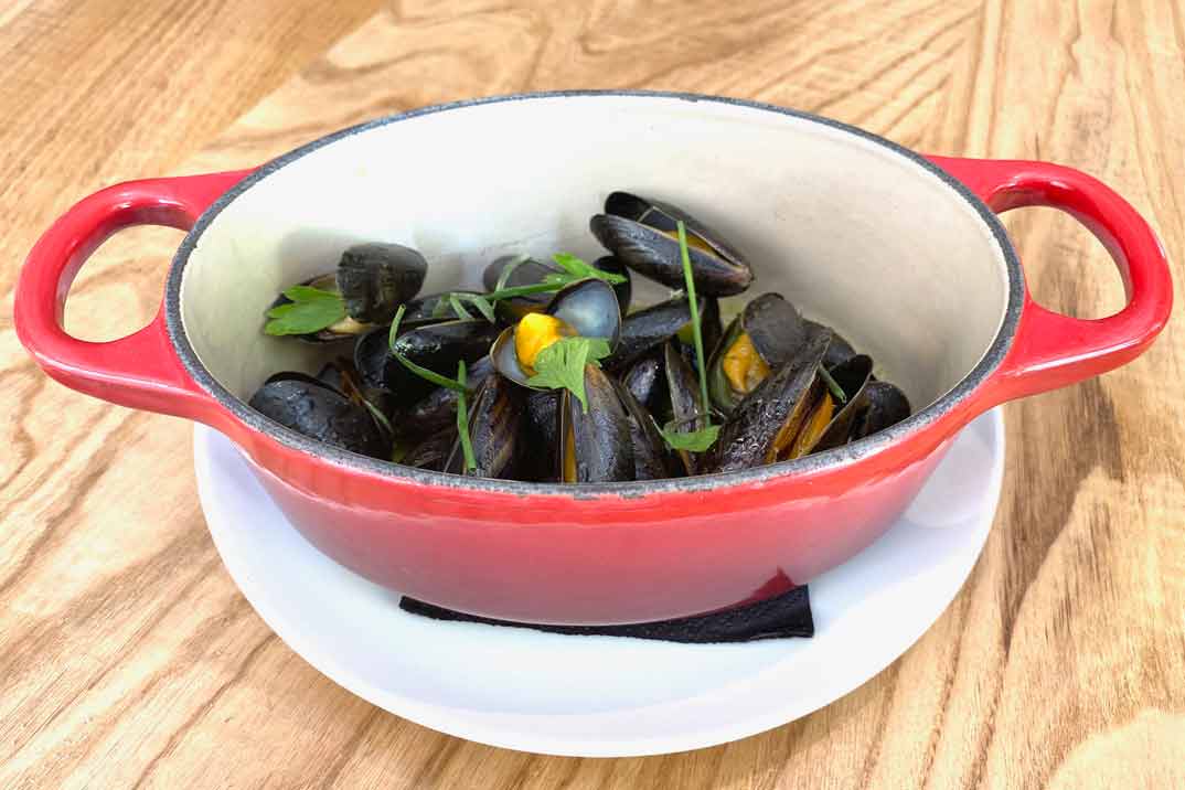 Le toca el turno al marisco. Empezamos con unos «Mejillones Morriseau de Bouchot con aceite de perejil» y una «Nécora a la parrilla con yema de huevo, cebolla y un toque de fino«… ¡Espectacular!