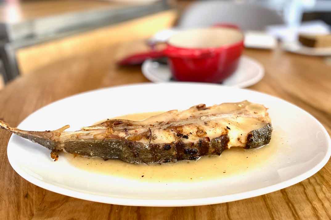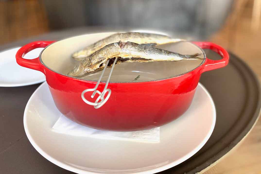 Porque es en su parrilla donde se obra la magia gastronómica culminante de El Señor Martín, qué mejor forma de terminar que degustando unos «Espetos de sardina a la brasa de carbón vegetal y toque de romero» y «Rodaballo de Marín con cebolleta» primero a la brasa y después confitado… Sobran las palabras.