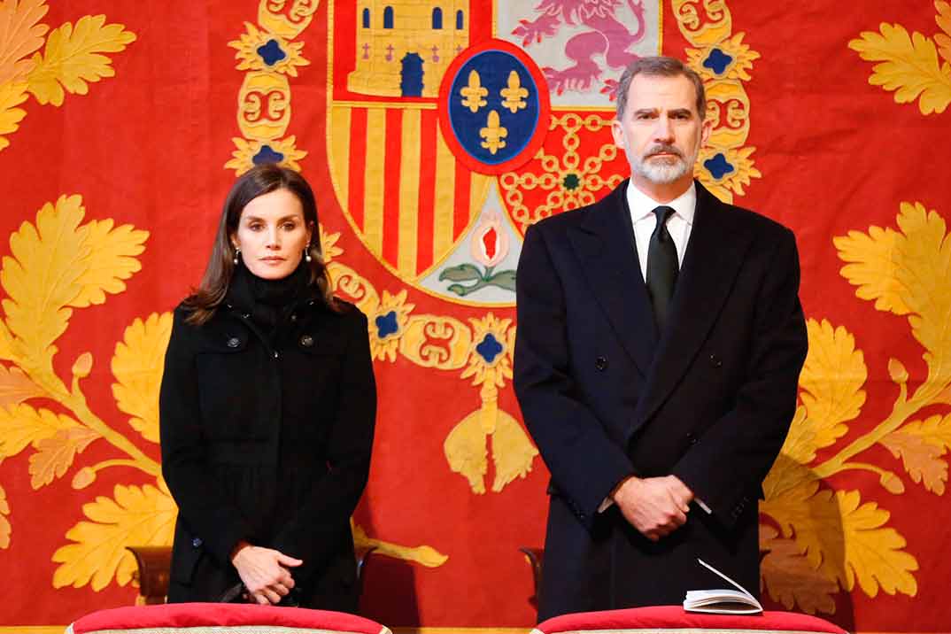 Los reyes don Felipe y doña Letizia, junto a los reyes eméritos don Juan Carlos y doña Sofía asistieron en el Real Monasterio de San Lorenzo de El Escorial al funeral por la Infanta doña Pilar fallecida el pasado 8 de enero a los 83 años.