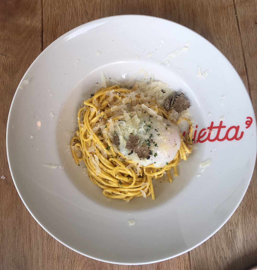 Para los amantes de la cucina tradizionale italiana, Giulietta es una parada obligatoria porque rebosa Italia, frescura, tradición y Mediterráneo en estado puro. La hermana pequeña de Fellina, está en la Plaza de Manuel Rodrigo, 7 (Conde de Orgaz) y su decoración consigue representar la esencia de la Toscana. Imperdible su Carpaccio di manzo y los Espagueti con trufa, queso parmesano y huevo poché, un verdadero espectáculo. Dejad un hueco para el postre porque su tiramisú en cafetera italiana es de los mejores que he probado en Madrid.