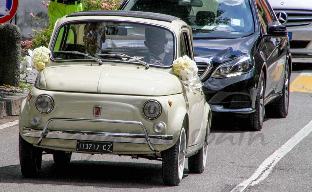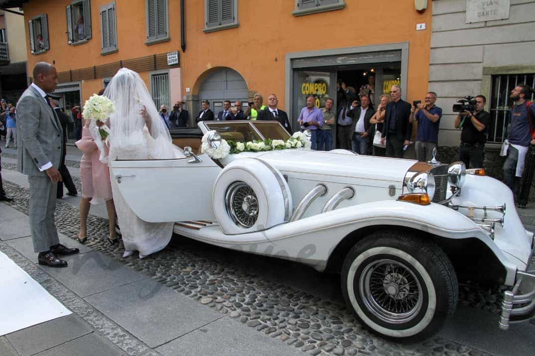 El jugador ha llegado a la iglesia de San Giovanni Battista en un original Fiat 500, en un guiño ‘vintage’, mientras la novia lo hacía en un clásico Excalibur descapotable.