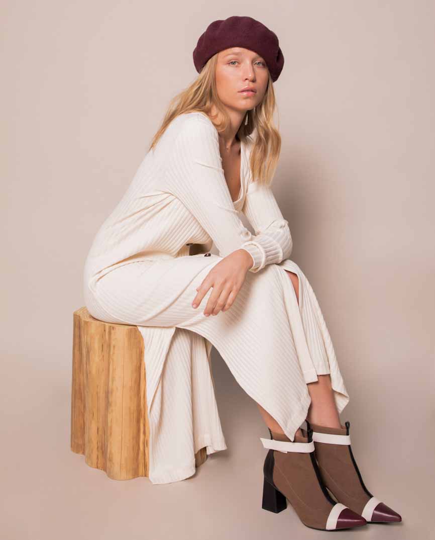 De su nueva colección, una de nuestras piezas favoritas es este vestido de punto en color crudo, con apertura lateral y abotonado en la parte delantera. También nos hemos rendido ante este vestido de canalé negro y mangas estilo murciélago. Dos looks muy femeninos y cálidos para este invierno.