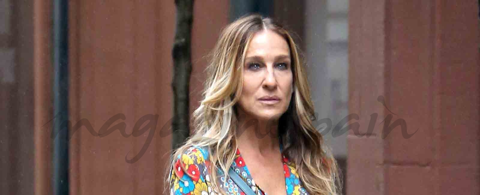 Con un look muy primaveral, con un colorido vestido de estampado floral, Sarah Jessica Parker continúa el rodaje de los nuevos capítulos de la serie que protagoniza, «Divorce«.