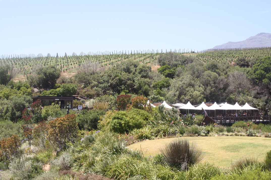 Una bodega de arquitectura moderna que utiliza elementos naturales de roca y madera. La bodega está rodeada de viñedos, olivares, huertos de almendros y jardines fynbos. Aquí podréis disfrutar, además de sus espectaculares vistas, de catas de vino maridado con chocolate, diseñado para mejorar los sabores en sus vinos y educar el paladar a diferentes texturas y sabores inusuales; catas con bandeja de quesoso de su restaurante Overture, con tres estrellas en la Guía de restaurantes de Rossouws. Nosotros hicimos una cata con 5 de sus vinos y una magnífica tabla de quesos.