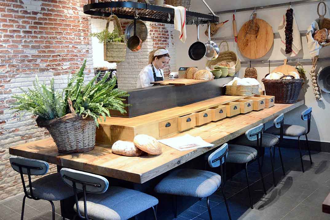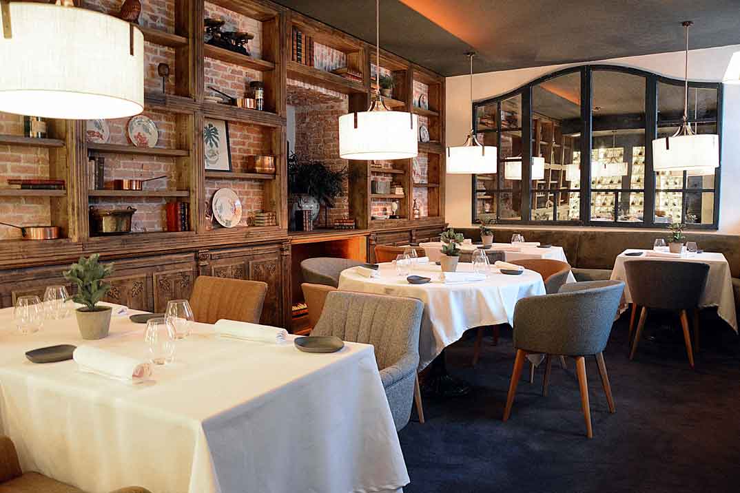 El restaurante se encuentra en el número 55 de la calle Alcalá, en la sede de la antigua y emblemática Cervecería Correos, entre Cibeles y la Puerta de Alcalá. Aquí, los hermanos Jesús y Mikel Santamaría han querido presentar un formato de mercado donde cada uno de los cuatro espacios, cobra sentido y forma según el tipo de comida que sirven.