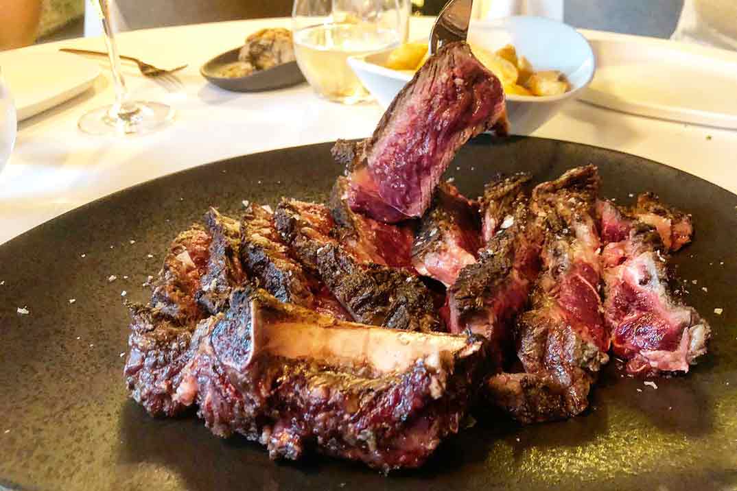 Continuamos con el protagonista de su carta, su menú de sidrería vasca. El menú consta de Txistorra frita, tortilla de bacalao, bacalao frito con pimientos y txuletón con ensalada y patatas fritas.