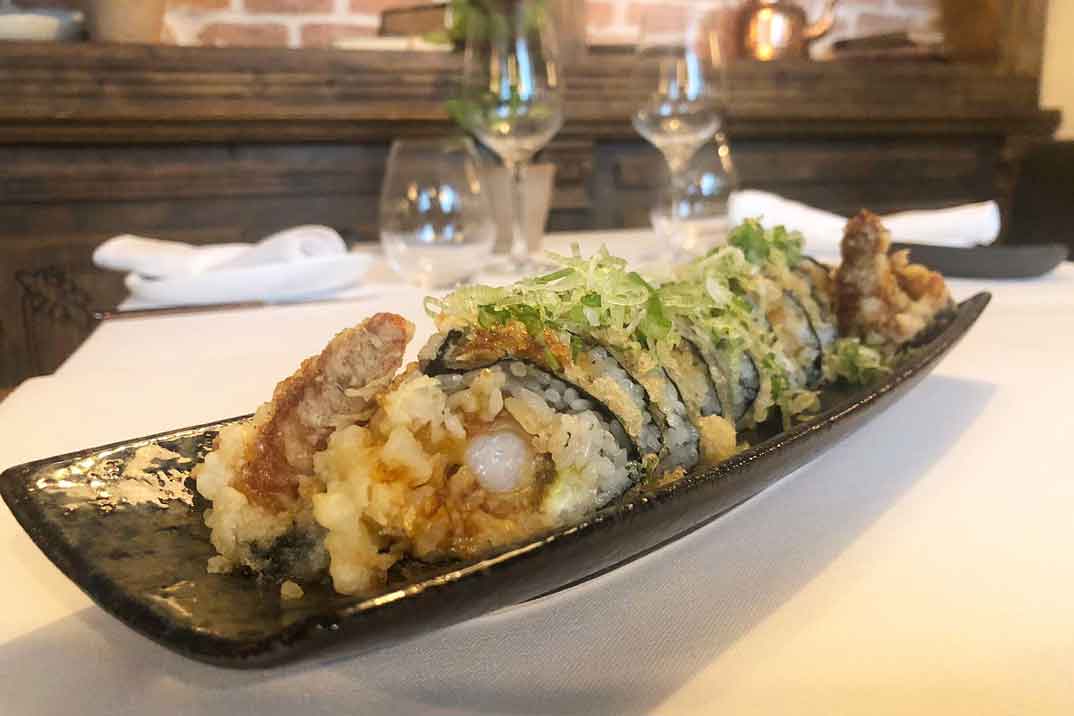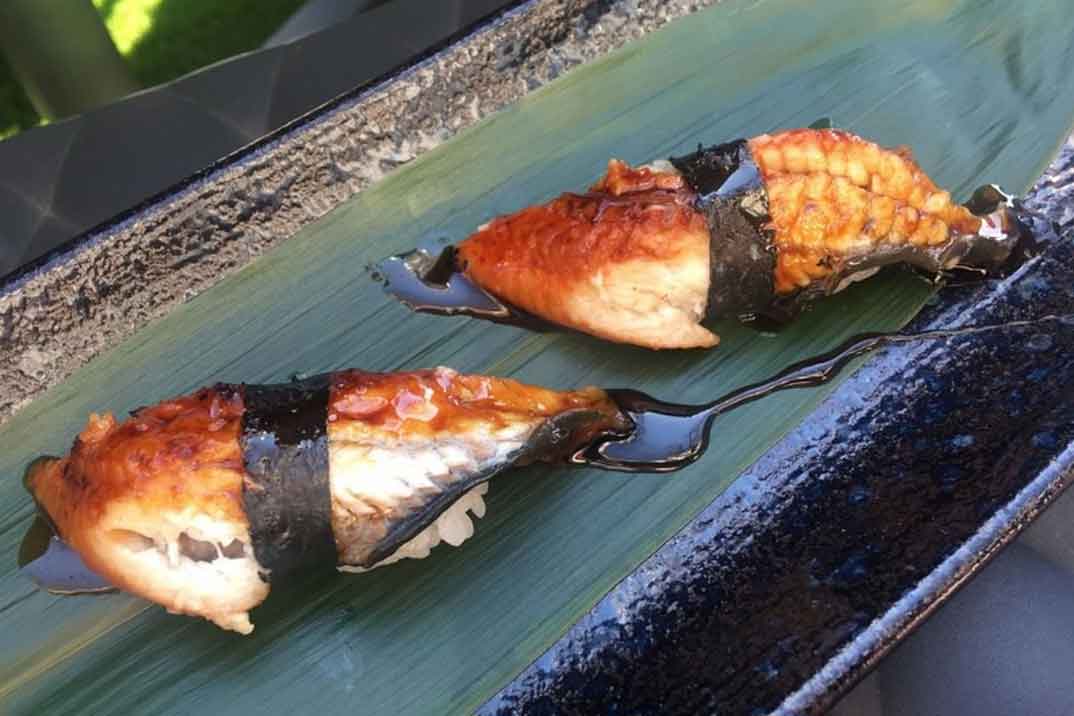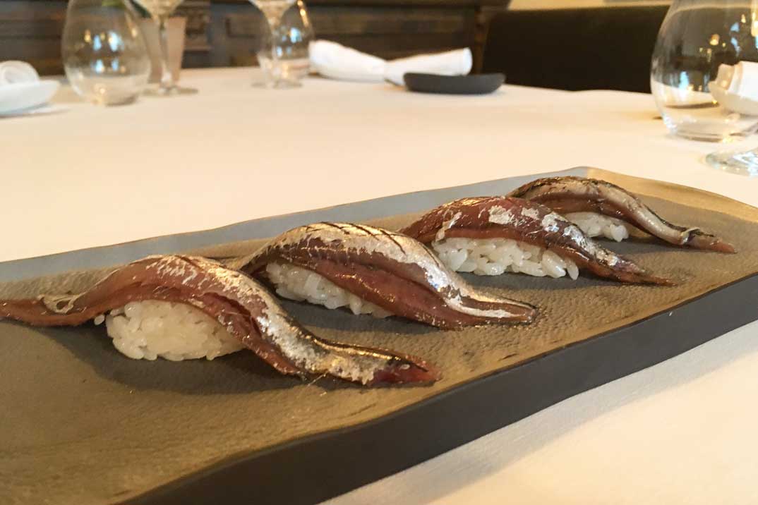 Empezamos nuestra experiencia gastro probando sus Pintxos de Sushi. Un territorio internacional que guarda relación directa con las formas del pintxo vasco y con la cocina en miniatura de la que el Grupo Bokado es impulsor histórico. «Niguiris de antxoa«, «Makis de merluza frita y mayonesa del pikillo«, «Tempurizado de txangurro» y «Niguiris de anguila«. Como amante de la comida japonesa, tengo que decir que todos los que probé estaban realmente espectaculares.