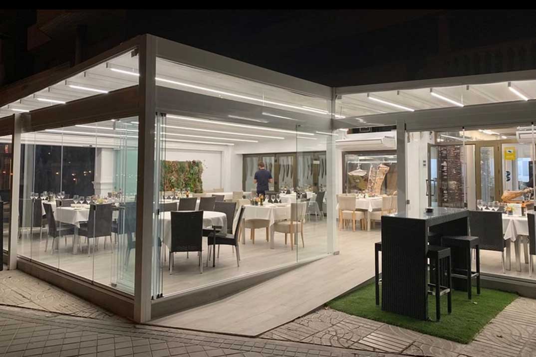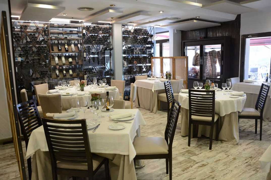 El restaurante está dividido en tres zonas: una barra pensada para tapear o tomarte un vino, un salón interior donde se exhiben las piezas de carne y desde donde se puede ver la zona de brasas y, la terraza, acristalada hace poco y que desde entonces ha cogido todo el protagonismo.