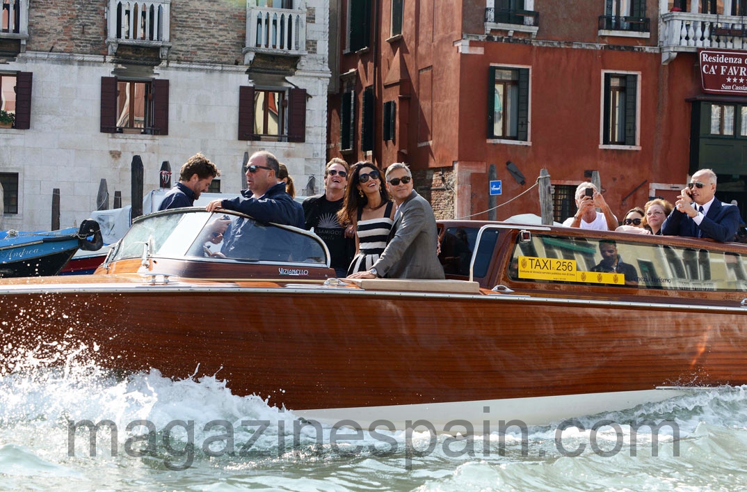 George-Clooney y Amal Alamuddin llegan a Venecia, 24 horas antes de su enlace matrimonial.