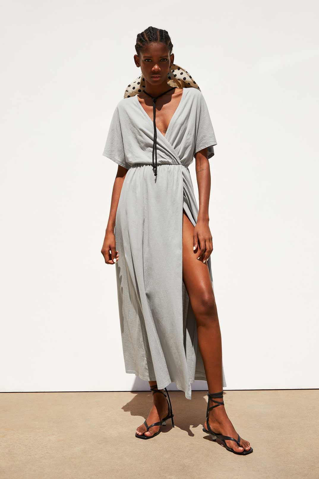El vestido cruzado favorece a cualquiera independientemente de su edad y figura. Su escote es moderado, ni exagerado ni demasiado cerrado. Esto le convierte en la prenda perfecta para cualquier ocasión. Para una cita informal va ideal con unas deportivas. Con unos tacones da al look un giro de 380 grados. Además uno puede elegir entre opciones infinitas como estampados a puntos o lisos, en un tono gris y naranja oscuro como estos por ejemplo ¿a que son irresistibles?