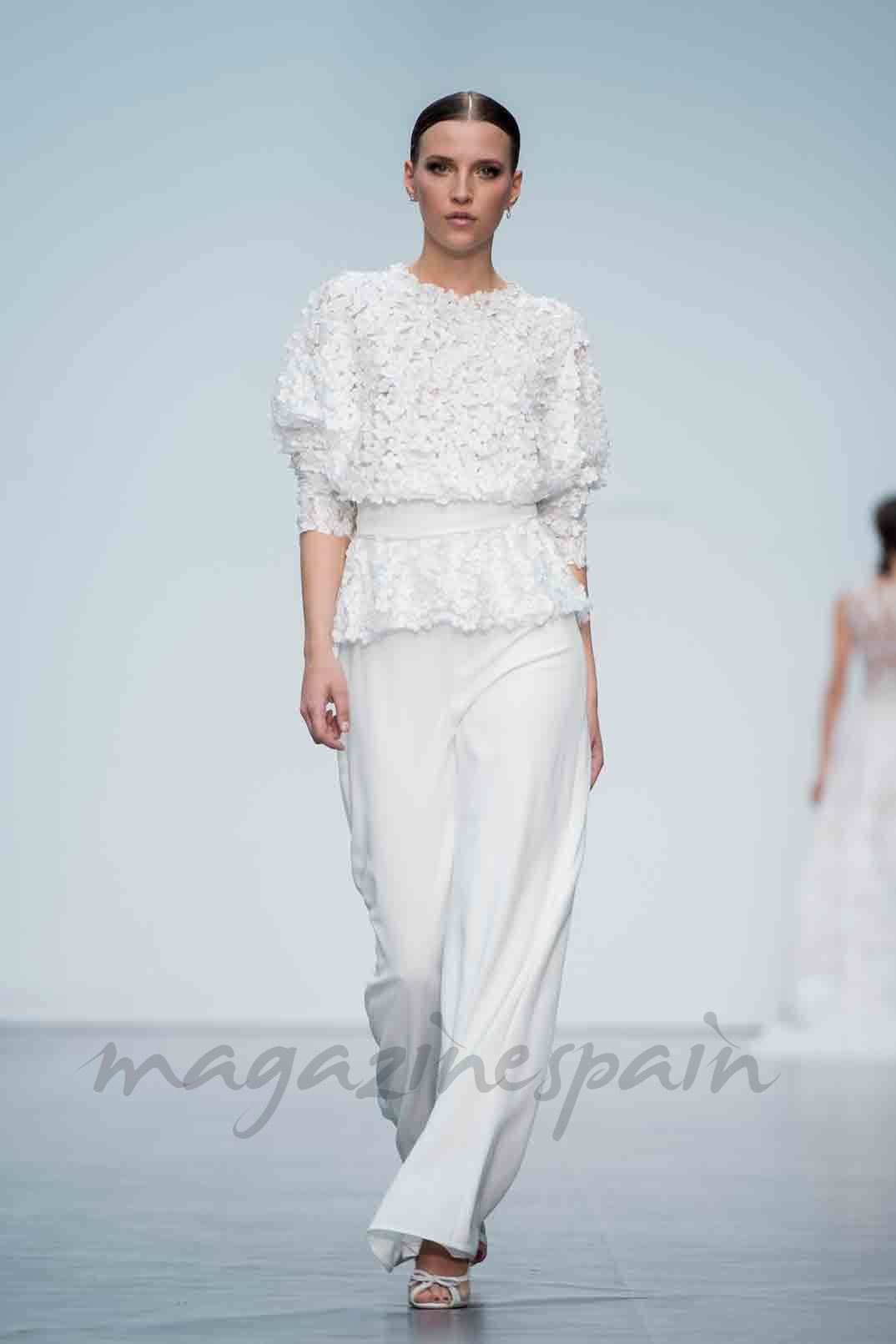 Hannibal Laguna ha sido el diseñador encargado de inaugurar esta nueva cita con un desfile inspirado en las flores de su nuevo jardín. Silkgarden así se llama la colección. Sobre la pasarela hemos podido ver 32 diseños muy variados. Desde románticos vestidos con flores superpuestas, vestidos clásicos de inspiración en los años cincuenta, hasta diseños más vanguardistas para las  novias que quieran arriesgar.