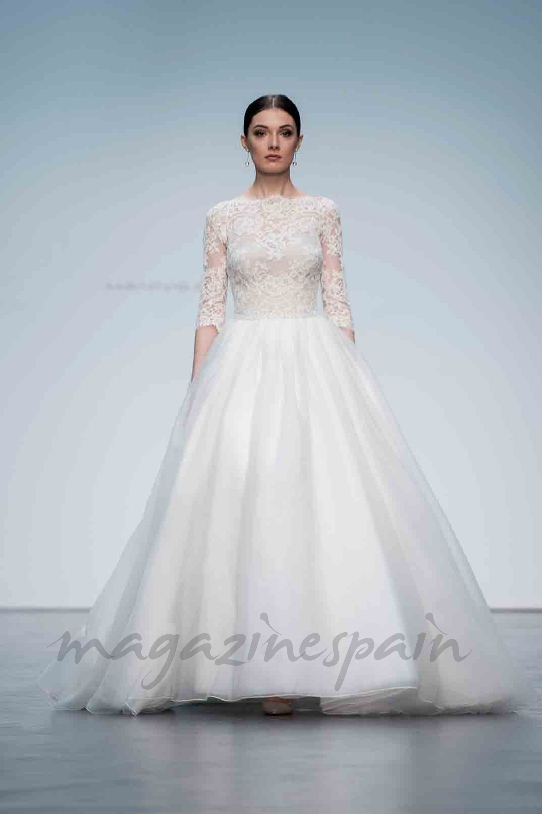 Imprescindibles sus tradicionales vestidos de princesa, con cuerpos ceñidos de encaje y pedrería y faldas de mucho volumen de seda para las más románticas.