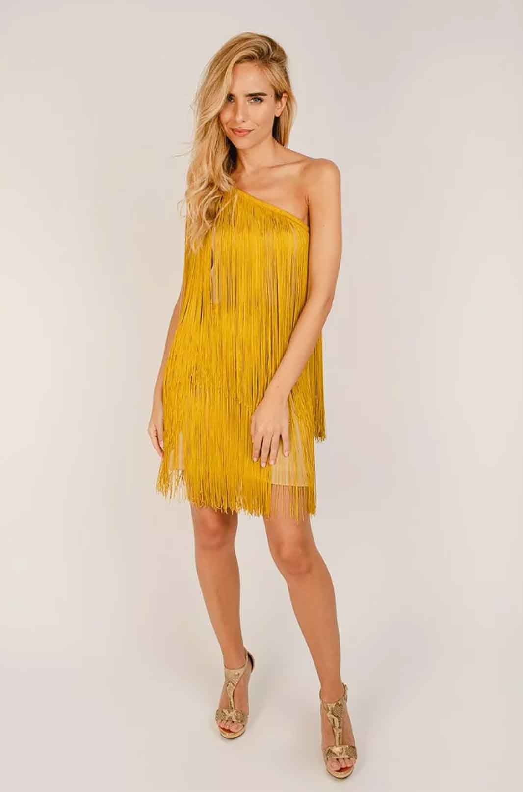 Puede que una de las razones por las que caemos, una y otra vez,  frente a estos vestidos asimétricos– algo extraños a primera vista – es porque son diferentes. Nos seduce la idea de que por lado, sean de palabra de honor, por ejemplo, pero cuando nos damos la vuelta, se aprecia un fino tirante, que incluso puede estar adornado por unos flecos – como en el modelo-. Los vestidos de un solo tirante son todo una sensación esta temporada. ¿No son irresistibles?