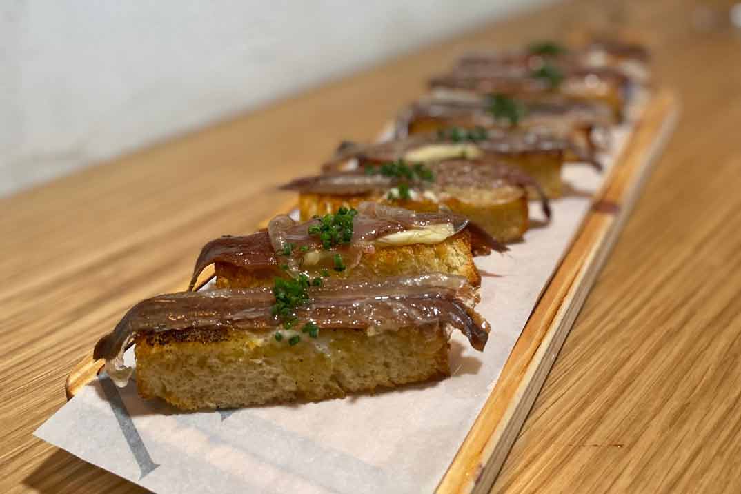suman a los «clásicos» de la casa. Entre sus entrantes, destacamos «La anchoa sobre pan brioche con mantequilla ahumada y papada ibérica«, «La gamba roja al ajillo con manzanilla de Sanlúcar y sus cabezas a la parrilla» y «Pimientos asados al sarmiento, salmorejo, sardina marinada en vinagre de Jerez«.
