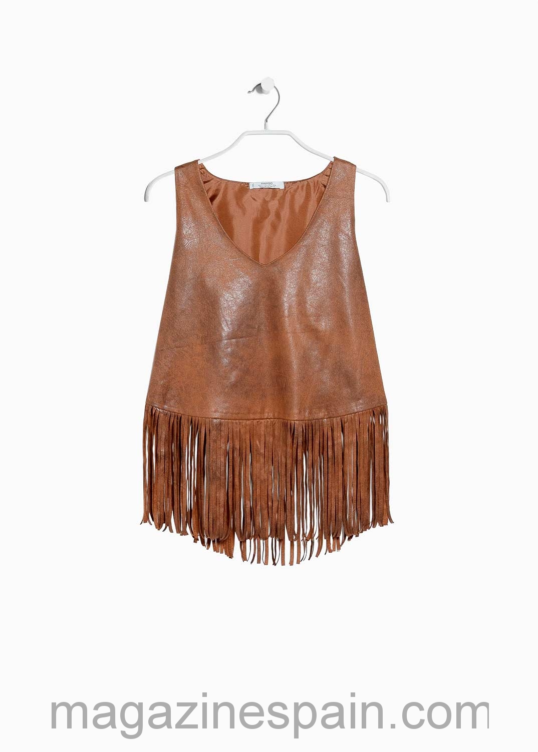 Si por el contrario, os gusta más el estilo «Cowgirl«, podéis optar por este look, formado por unos shorts y un top con flecos, y por supuesto unas botas. Imprescindibles los accesorios en plata.